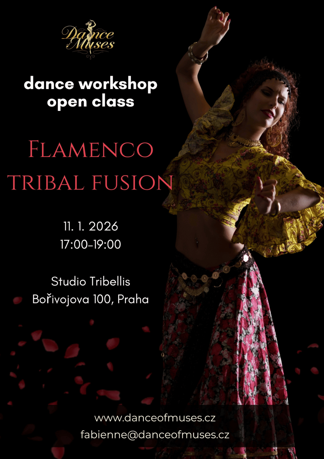Workshop Flamenco tribal fusion přináší originální propojení tří tanečních světů – flamenca, orientálního tance a Tribal Fusion. Zaměříme se na postoj, práci paží, výraz, kontrasty, dynamiku, "flamenco vibe" v orientálních prvcích i zemitou energii, která celý styl ukotví.